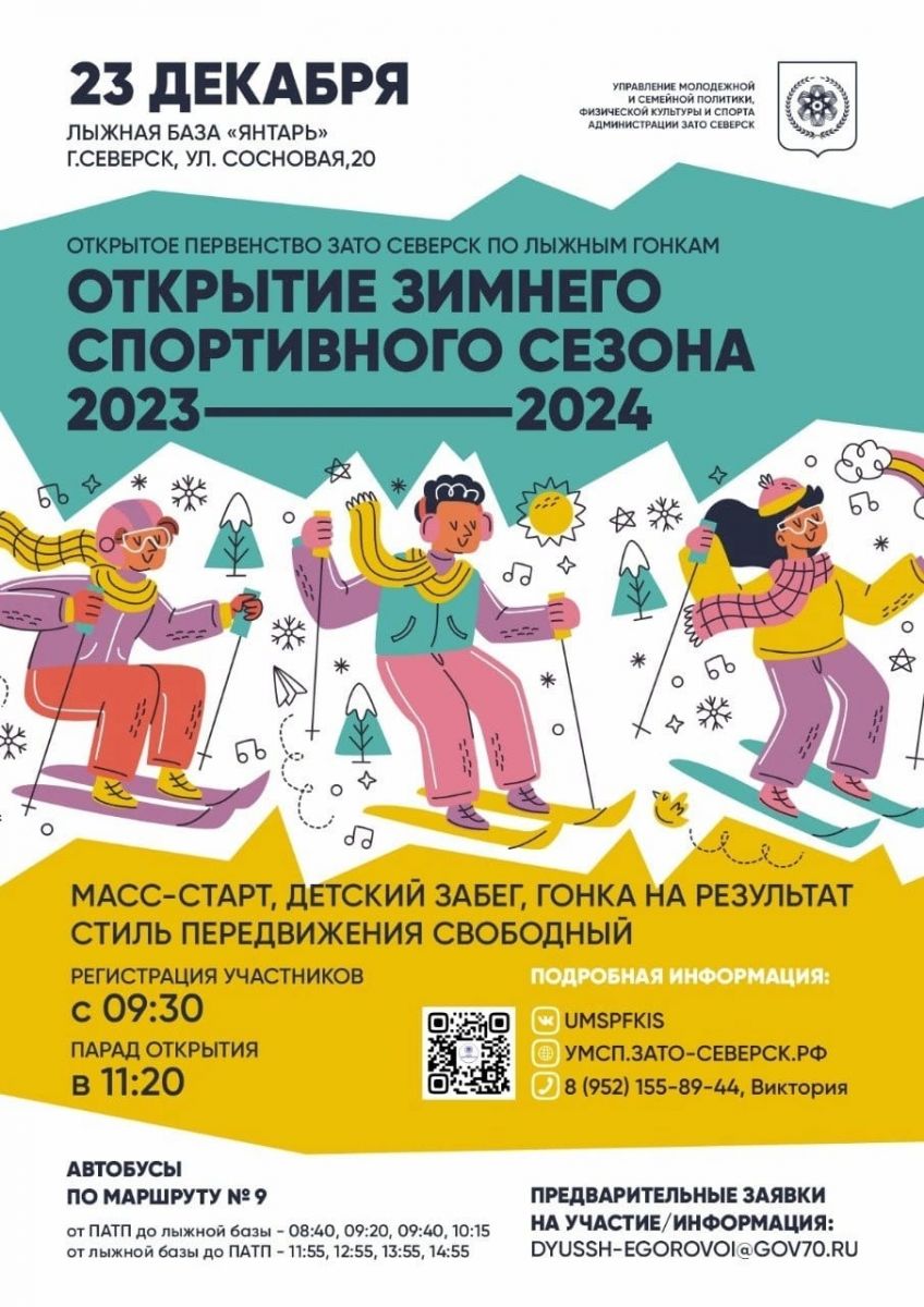 В субботу, 23 декабря, на лыжной базе «Янтарь» состоится открытие зимнего спортивного сезона, в рамках которого будет проведено открытое первенство ЗАТО Северск по лыжным гонкам.