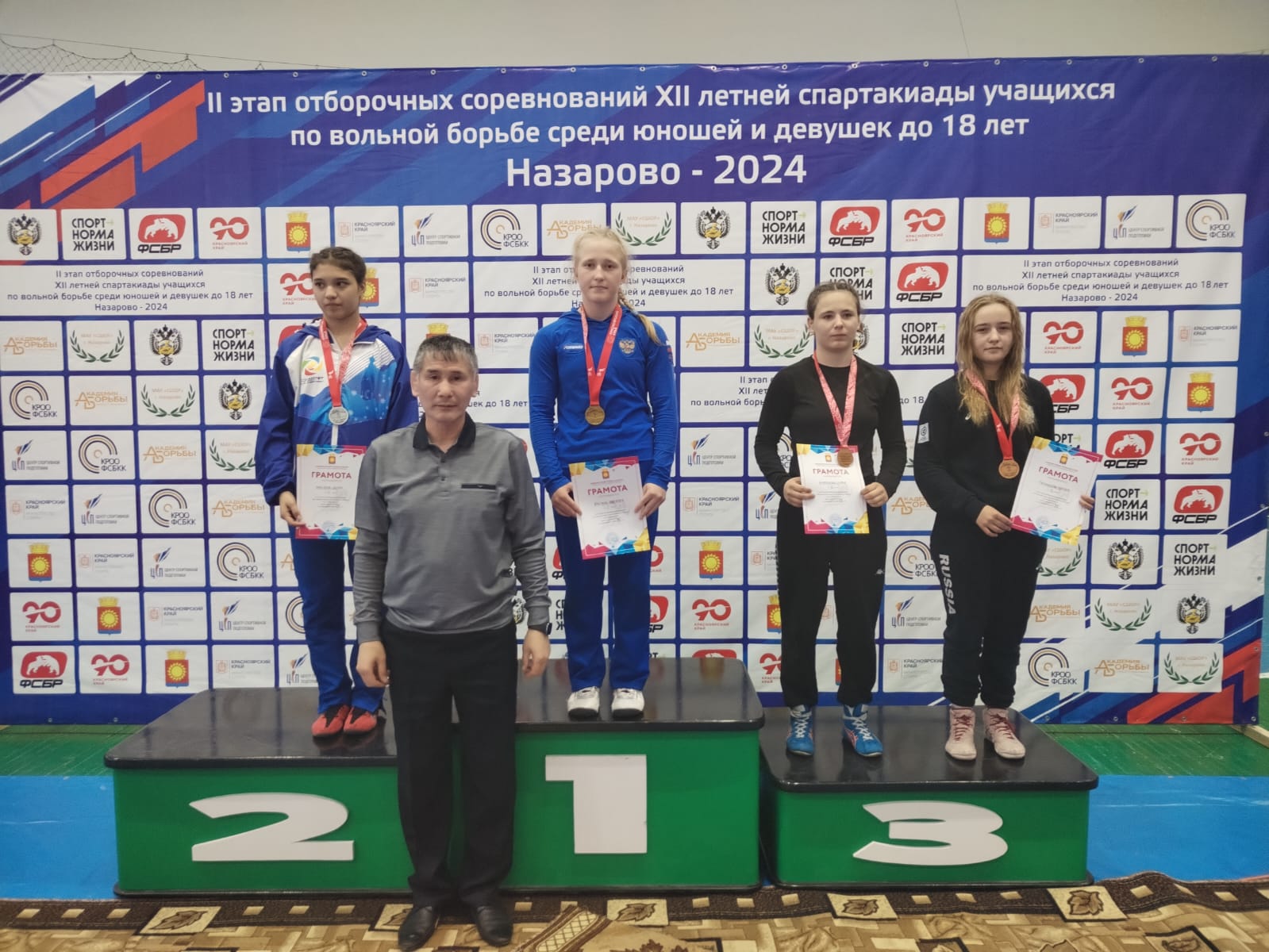 С 10 по 12 мая в г. Назарово прошел II этап XII Летней Спартакиады учащихся России 2024 года по спортивной борьбе (дисциплина – вольная борьба) среди девушек до 18 лет.