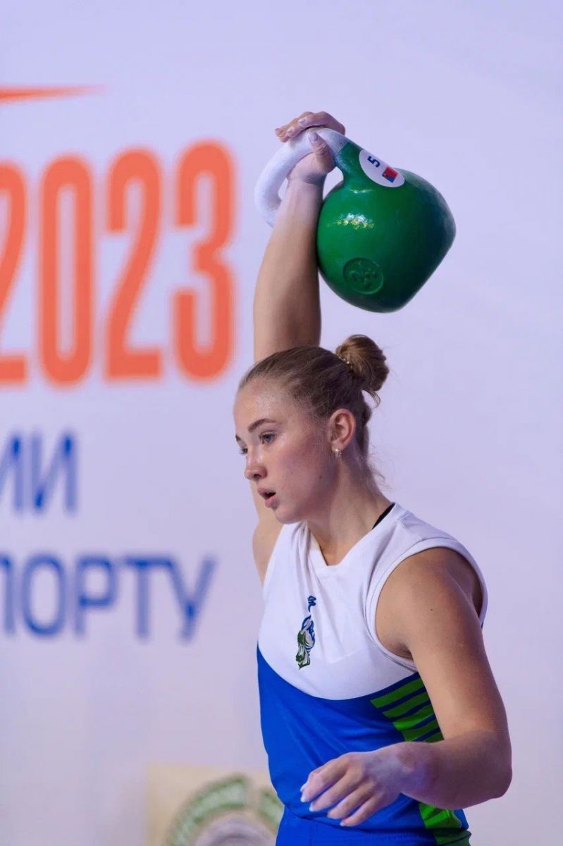 Ксения Бойко представляет Федерацию гиревого спорта Томской области.