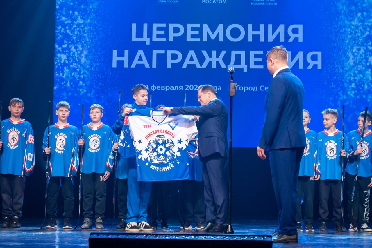 В завершении визита в переполненном Северском музыкальном театре прошла торжественная церемония награждения сотрудников СХК, медиков, представителей городской общественности и трудовых династий. Подарком северчанам от Росатома стал концерт звезд эстрады «Старко».