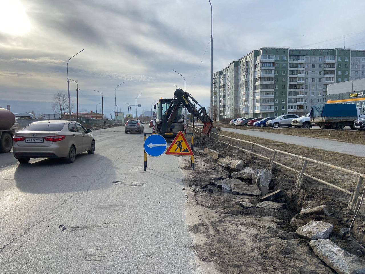 В настоящее время подрядчик приступил к демонтажу бордюрного камня на участках дорог ул. Ленина и ул. Ленинградской.