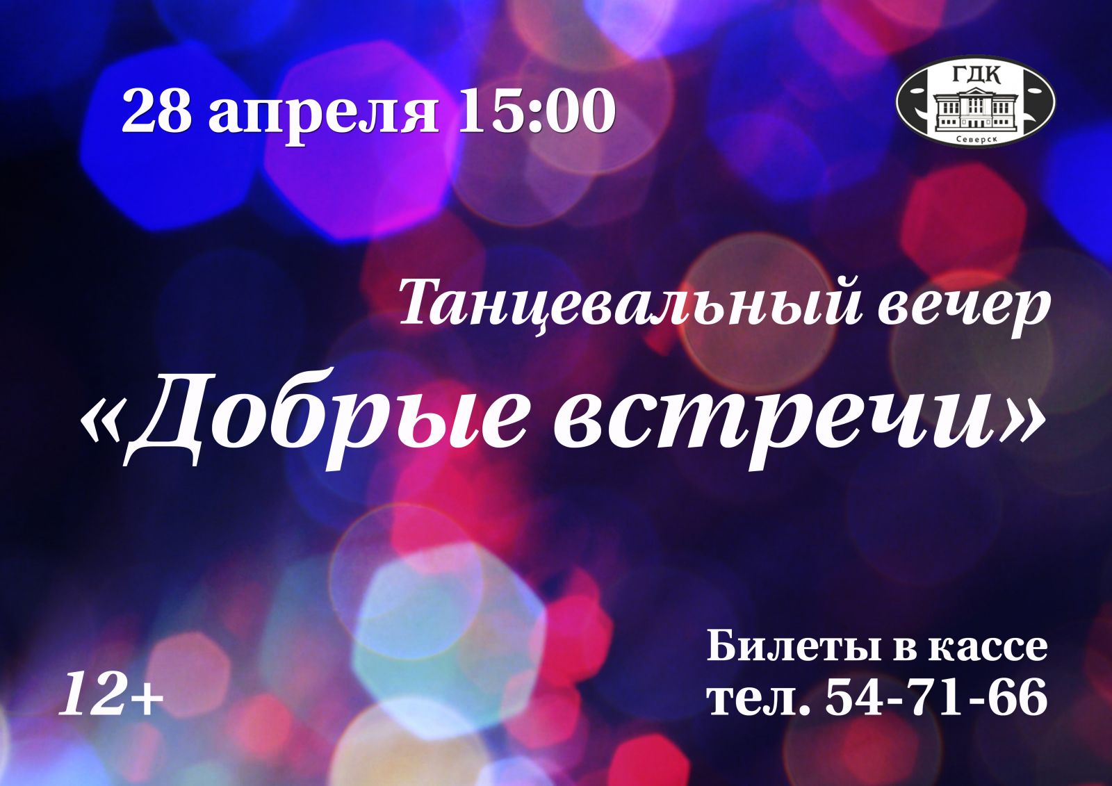 28 апреля в 15:00 в Городском доме культуры состоится танцевальный вечер «Добрые встречи» (12+).