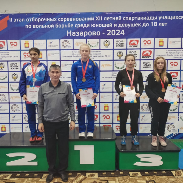 С 10 по 12 мая в г. Назарово прошел II этап XII Летней Спартакиады учащихся России 2024 года по спортивной борьбе (дисциплина – вольная борьба) среди девушек до 18 лет.