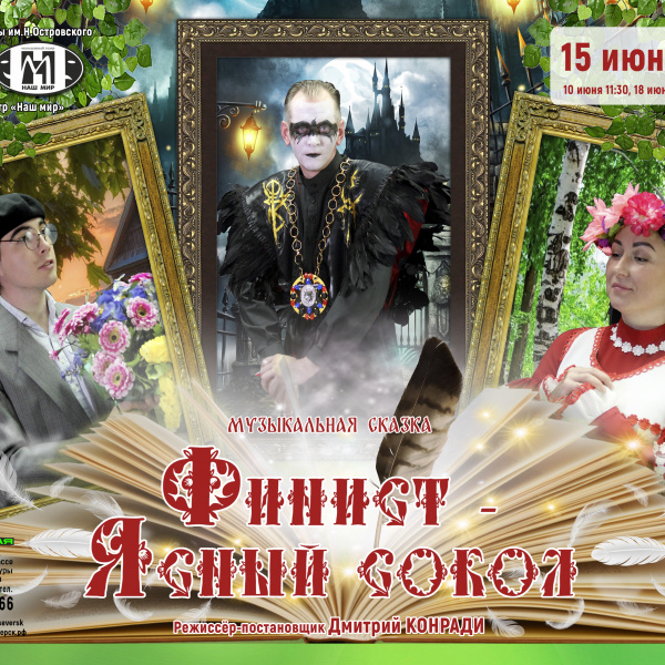 В июне в Городском доме культуры им.Н.Островского состоится премьера музыкальной сказки «Финист - Ясный сокол» (6+) Молодежного театра «Наш мир». Показы пройдут 10 июня в 11:30, 15 июня в 12:00, 18 июня в 10:30 и 19 июня в 11:00.