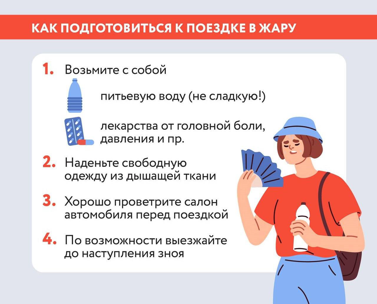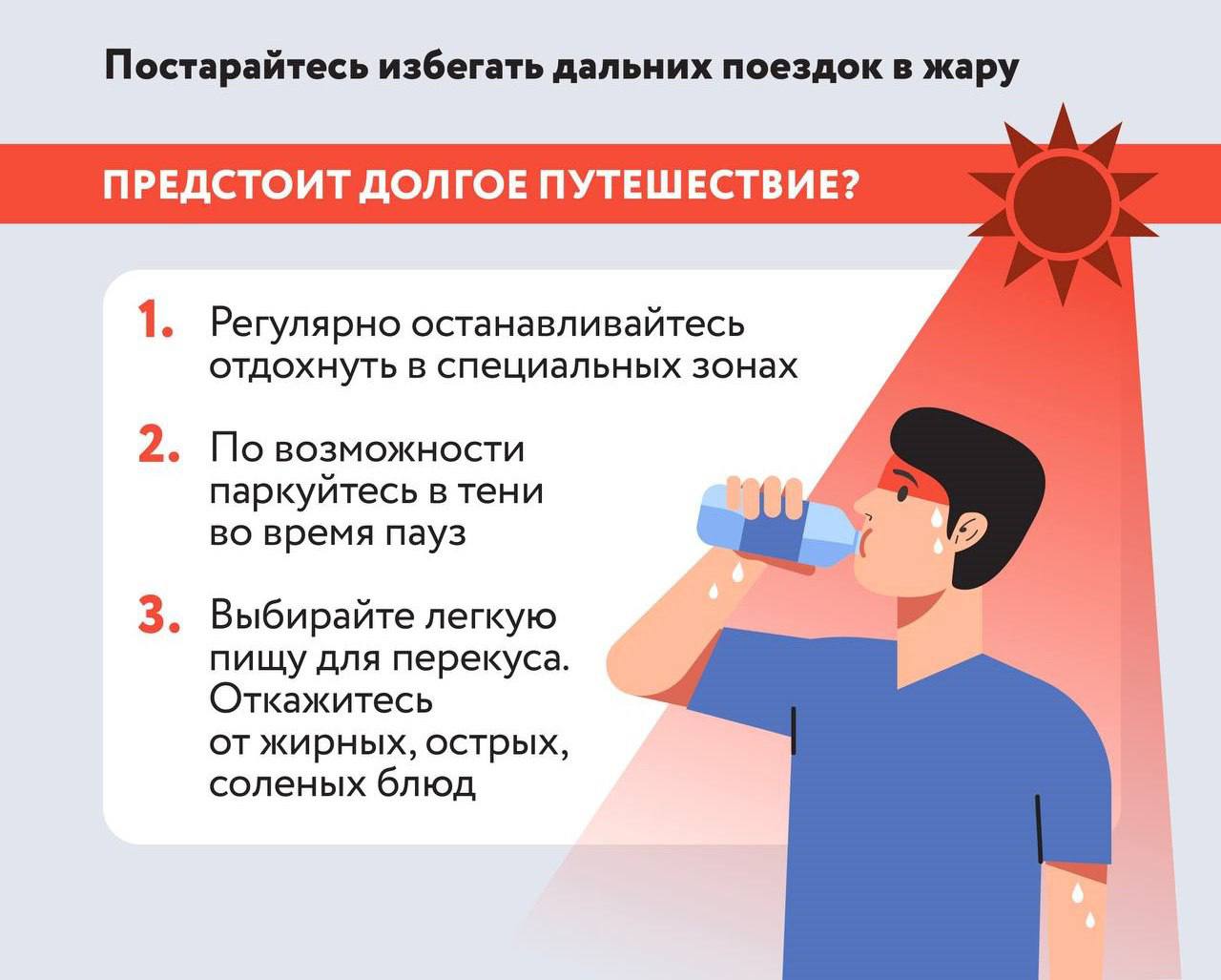 Помните, высокие температуры могут негативно влиять на техническое состояние автомобиля. Проверьте его перед поездкой, особенно если планируется дальняя дорога.