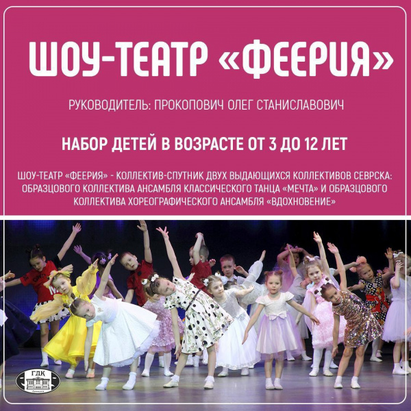 Хореографический коллектив Шоу-театр «Феерия» Городского дома культуры им.Н.Островского объявляет набор детей в возрасте от 3 до 12 лет!