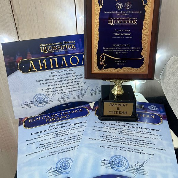 Национальная телевизионная премия «Щелкунчик» проходила в Москве с 10 по 13 января. В 2025 году участие в ней приняли свыше 300 коллективов из разных регионов страны. Томскую область представляла северская студия танца «Ласточка» (руководители - Екатерина Белоусова и Олеся Смирнова).