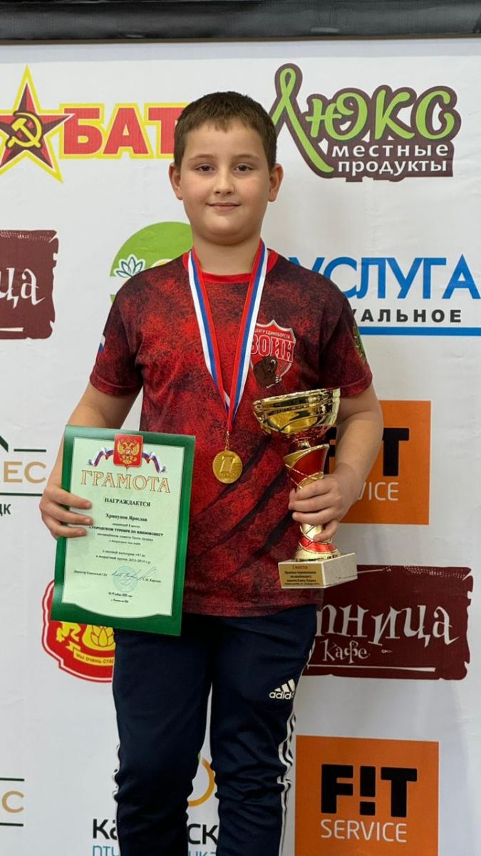 В своей весовой категории свыше 47 килограммов Ярослав занял почетное первое место. 10-летний северчанин, около трех лет занимается кикбоксингом в центре единоборств «Воин» под руководством Дениса Мещерякова и Вероники Гудиной. Юноша не в первый раз становится золотым призером подобных соревнований.