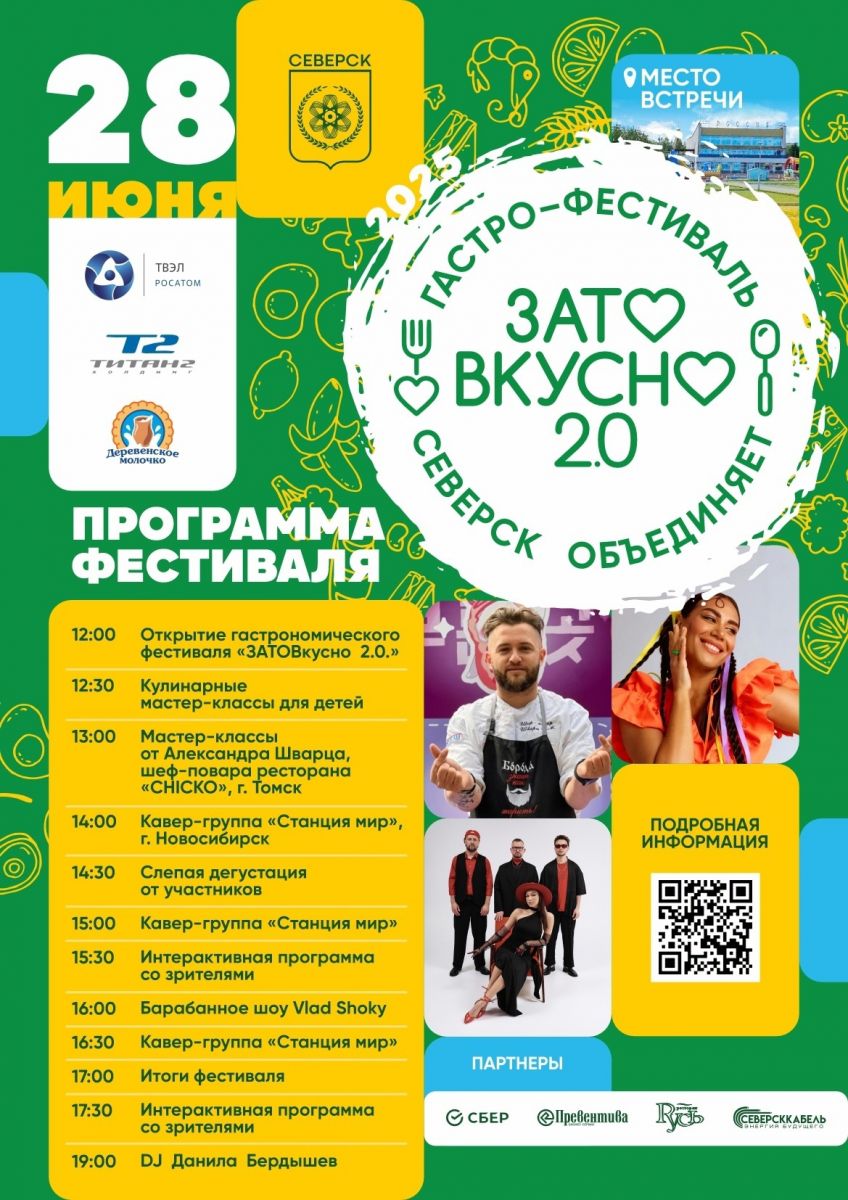 В 12:00 на площадке возле КТ «Россия» состоится открытие гастрофестиваля «ЗАТО Вкусно 2.0».