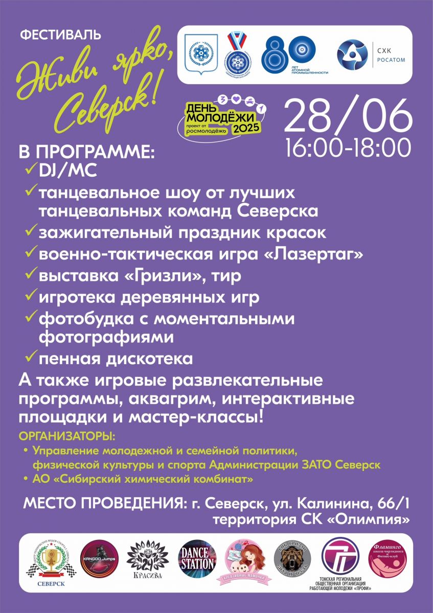 На площади около СК «Олимпия» с 16:00 до 18:00 пройдет фестиваль «Живи ярко, Северск».