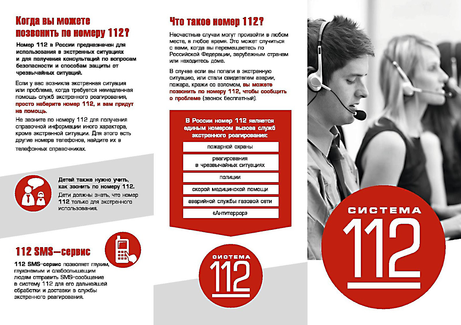Система 112 – это система обеспечения вызова экстренных оперативных служб по единому номеру «112» на территории Российской Федерации. Она предназначена для обеспечения оказания экстренной помощи населению при угрозах жизни и здоровью, авариях, пожарах, нарушениях общественного порядка и при других происшествиях и чрезвычайных ситуациях.