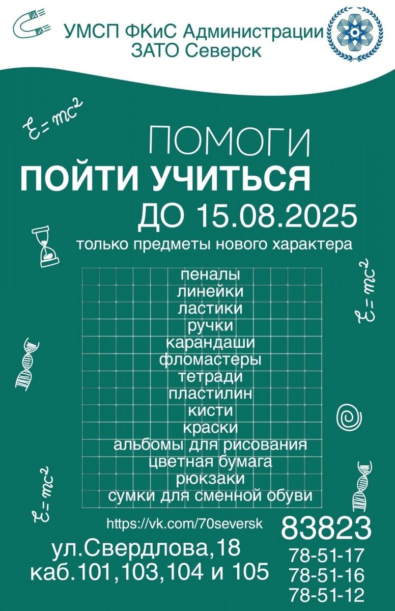В 2025 году в целях оказания помощи семьям, находящимся в трудной жизненной ситуации, Администрация ЗАТО Северск запускает акцию «Помоги пойти учиться».⁣