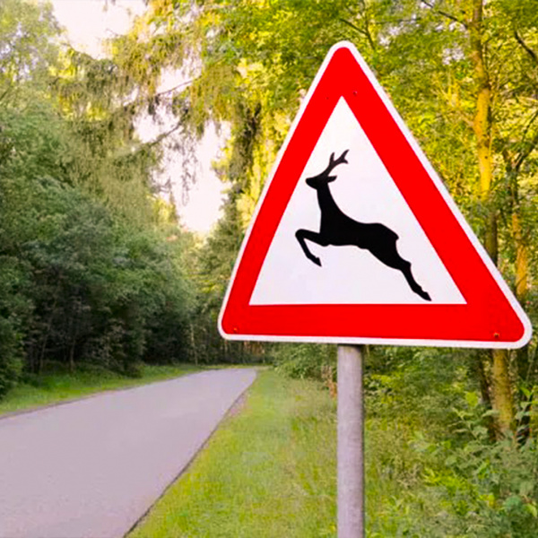 Движение по загородной трассе в любое время года требует предельной собранности от водителя. Встретить животное на дороге можно в любое время года. О возможности появления диких животных на дороге водителя может предупредить дорожный знак «Дикие животные». Появление этого знака — предупреждение о том, что необходимо сбавить скорость и быть предельно внимательным. Лоси, олени или косули могут появиться в любой момент на любом участке дороги. Дикое животное — не добропорядочный пешеход, выбирать для форсирования проезжей части участок с разметкой оно не будет. Маршруты миграции непредсказуемые, поэтому все, что остается водителю, — быть бдительным и соблюдать самые простые рекомендации: