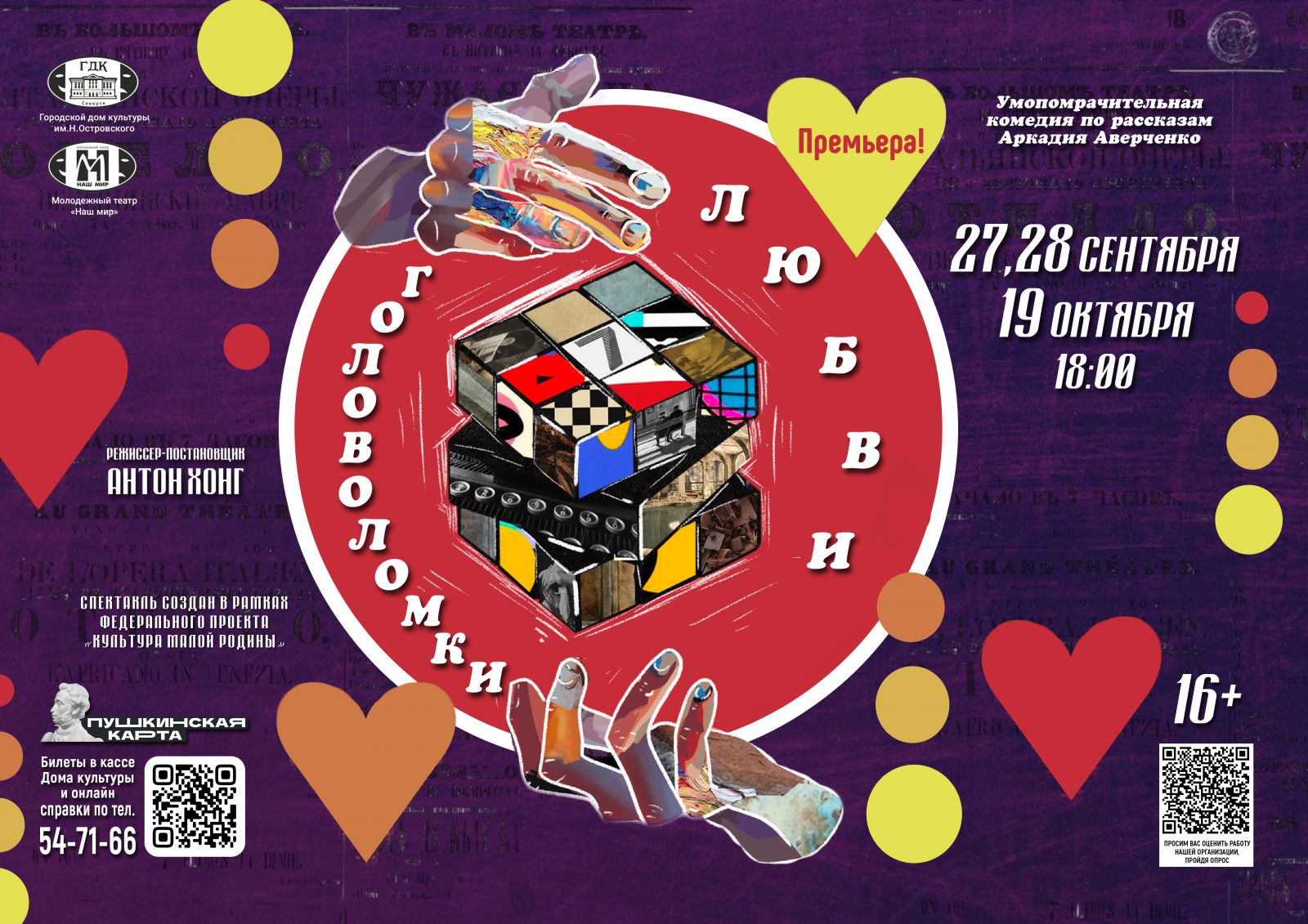 27 и 28 сентября в 18:00 в Городском доме культуры им.Н.Островского состоятся премьерные показы комедии «Головоломки любви» (16+) Молодежного театра «Наш мир».