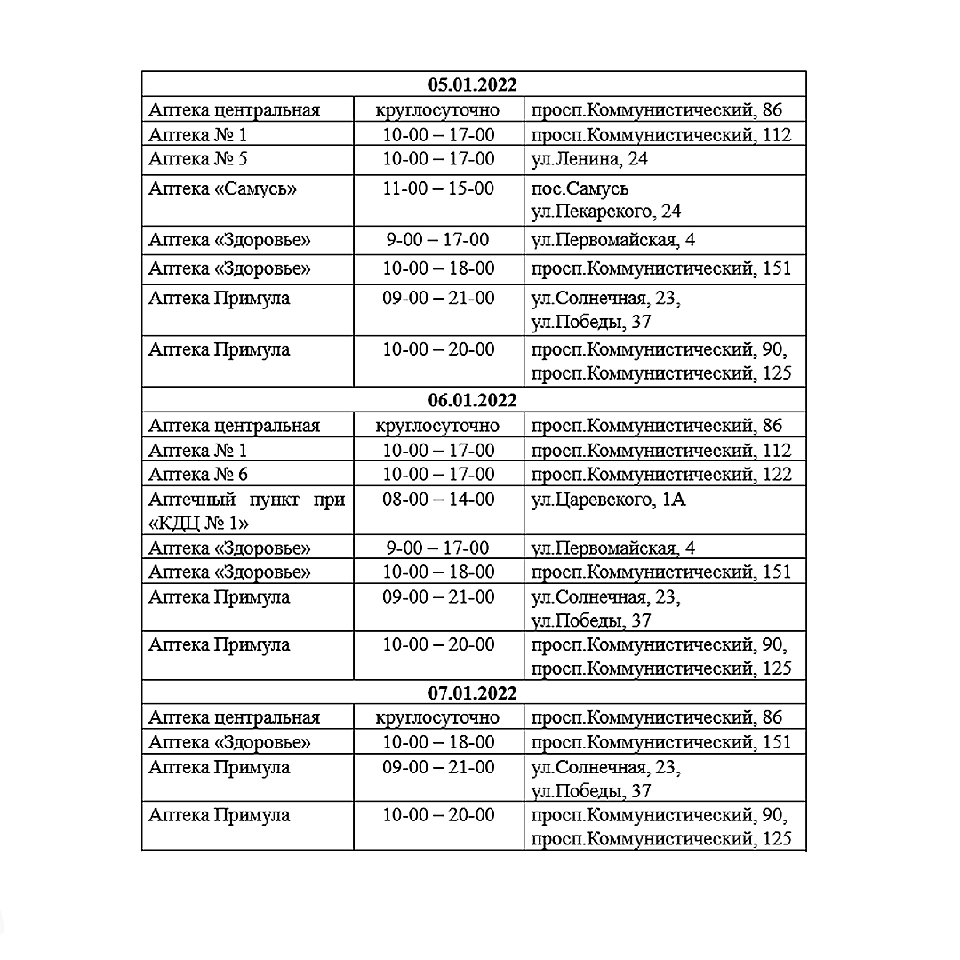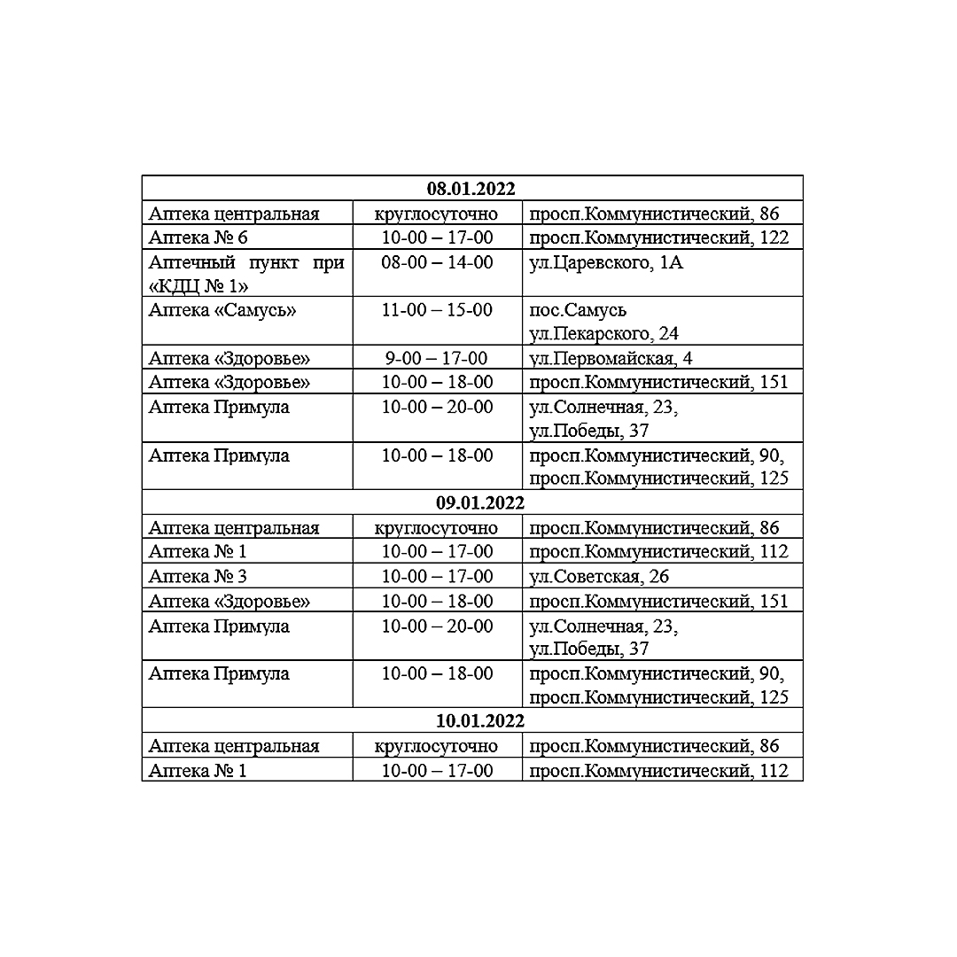 С 1 по 10 января городские аптеки будут работать по следующему расписанию: