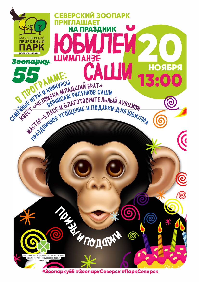 Конечно, это шимпанзе Саша, и ему исполняется аж 25 лет! По случаю юбилея в рамках творческой встречи пройдет Сашин вернисаж, а также благотворительный аукцион, где любой желающий сможет побороться за право приобрести картину Сашиной кисти.