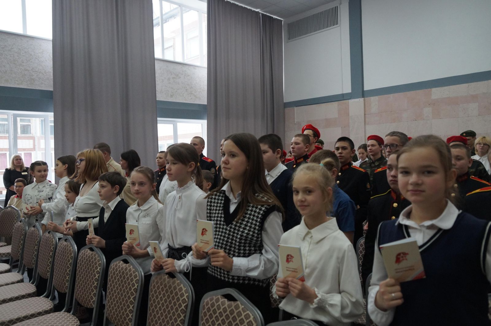 На Слете более 100 школьников, пожелавших вступить в ряды Юнармии, торжественно произнесли клятву юнармейца и получили знаки принадлежности к общественно-патриотическому движению «Юнармия», юнармейские книжки, из рук почетных гостей Слета.