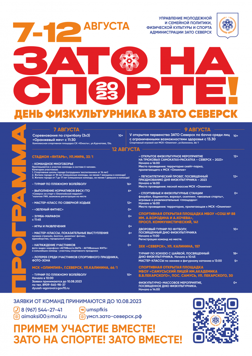 В рамках празднования Дня физкультyрника - 2023 в Северске пройдет спортивный праздник "ЗАТО НА СПОРТЕ".