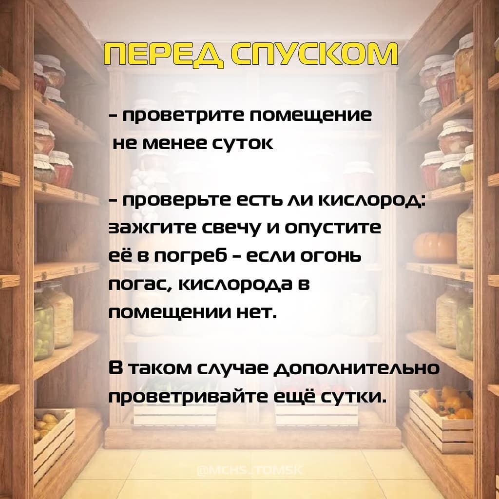 5. Недопустимо посещение погреба в одиночку, только вдвоем, чтобы один человек находился снаружи и мог при необходимости оказать помощь и вызвать службу спасения.