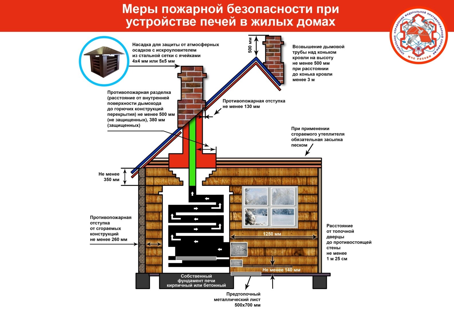- перед топкой должен быть прибит предтопочный металлический лист размером 50х70 см и толщиной не менее 2 мм, предохраняющий от возгорания случайно выпавших искр;