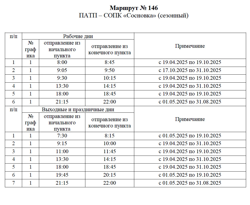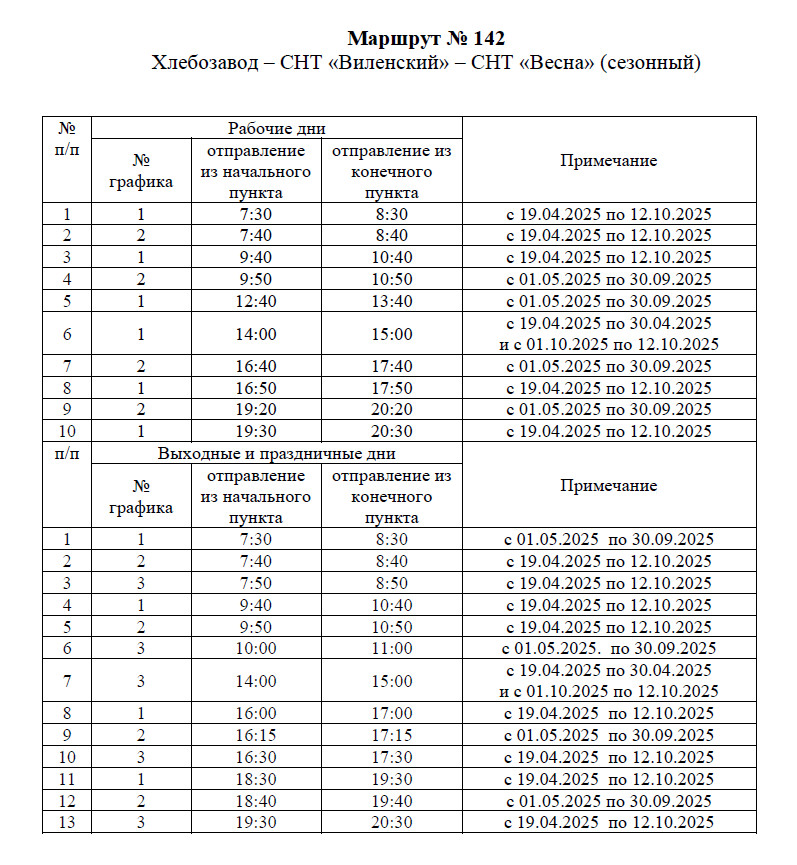 С 19.04.2025 начинают работу маршрут № 142 «Хлебозавод – СНТ «Виленский» – СНТ «Весна» и маршрут № 146 «ПАТП – СОПК «Сосновка».