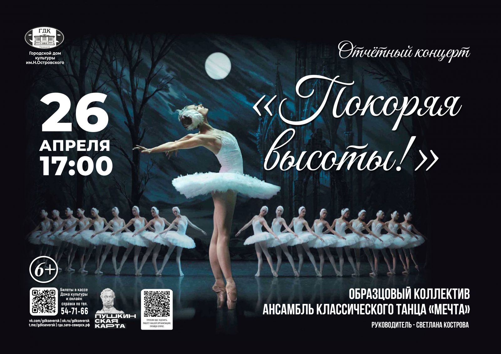 26 апреля в 17:00 в Городском доме культуры им.Н.Островского состоится отчетный концерт Образцового коллектива ансамбля классического танца «Мечта» - «Покоряя высоты!» (6+).