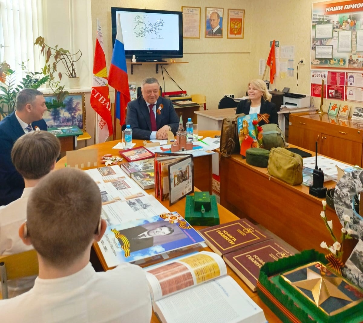 Накануне 80-летия Великой Победы Николай Диденко поговорил со старшеклассниками о значимых военных сражениях и о том, какой вклад в Победу внесли жители деревень и сёл, на территории которых сейчас располагается Северск.
