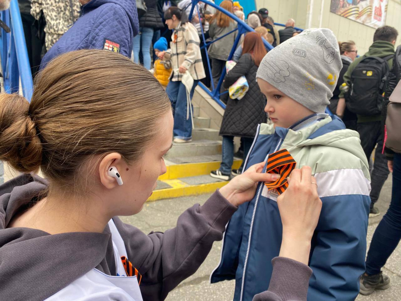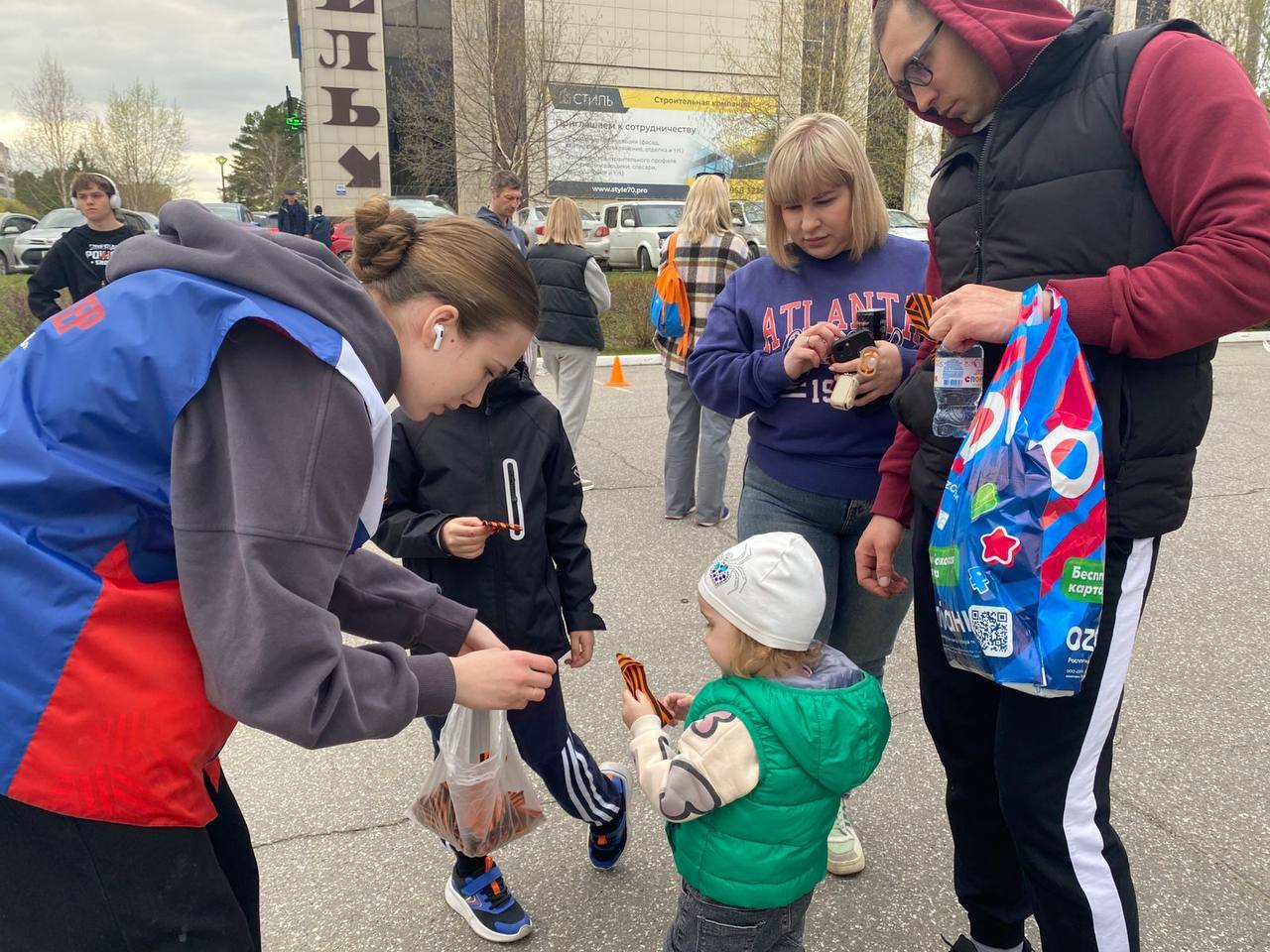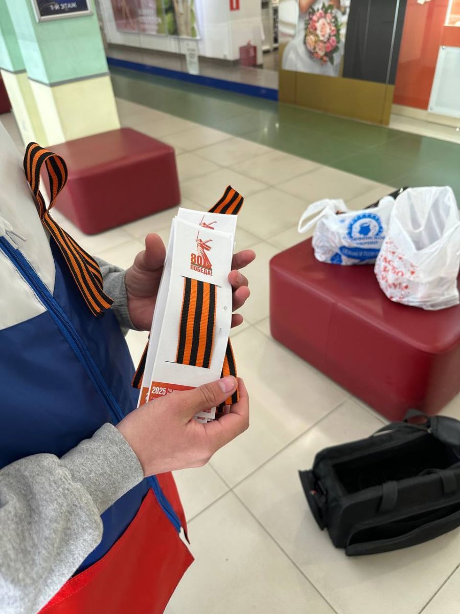 В рамках культурно-исторической акции «Георгиевская ленточка», приуроченной к предстоящему знаменательному событию, волонтеры раздают символы памяти и рассказывают жителям, как правильно носить ленточку.