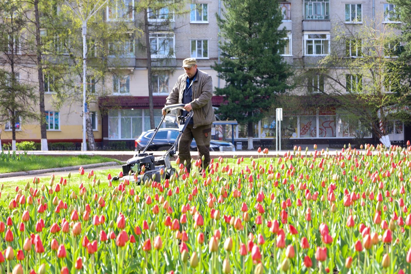 МБЭУ начало работы с центрального проспекта Коммунистического, где в эти дни расцветают тюльпаны