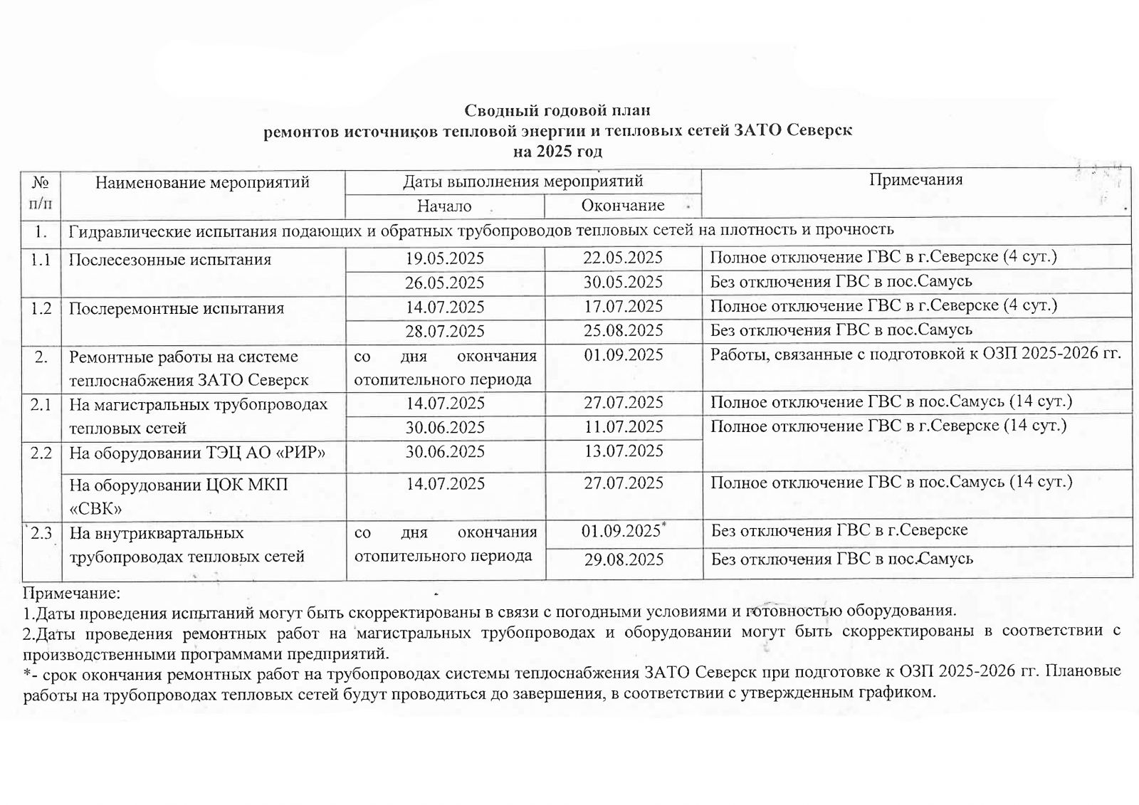 Филиал АО "РИР" в Северске информирует, что 19-22 мая запланированы гидравлические испытания городских сетей. В городе будет отсутствовать горячее водоснабжение.