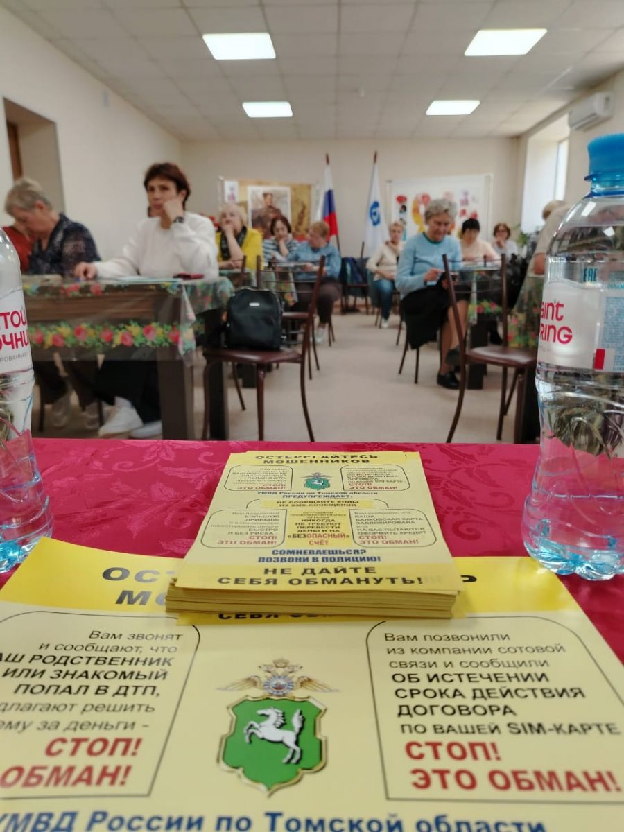 С целью информирования граждан и привлечения внимания жителей ЗАТО Северск к теме дистанционного мошенничества, повышения финансовой грамотности среди населения, сотрудники полиции УМВД России по ЗАТО г. Северск совместно с сотрудниками Прокуратуры ЗАТО Северск встретились с представителями Совета ветеранов АО «СХК» и провели профилактическую встречу о том, как обезопасить себя от мошеннических преступлений. На встрече присутствовало около 40 слушателей.