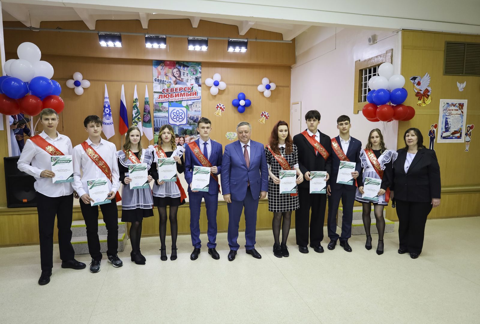 Мэр Северска Николай Диденко принял участие в «Последнем звонке» в школе №80. Он поблагодарил педагогов и родителей за воспитание и образование наших детей, пожелал каждому ребенку успешно сдать экзамены и найти свою дорогу в жизни.