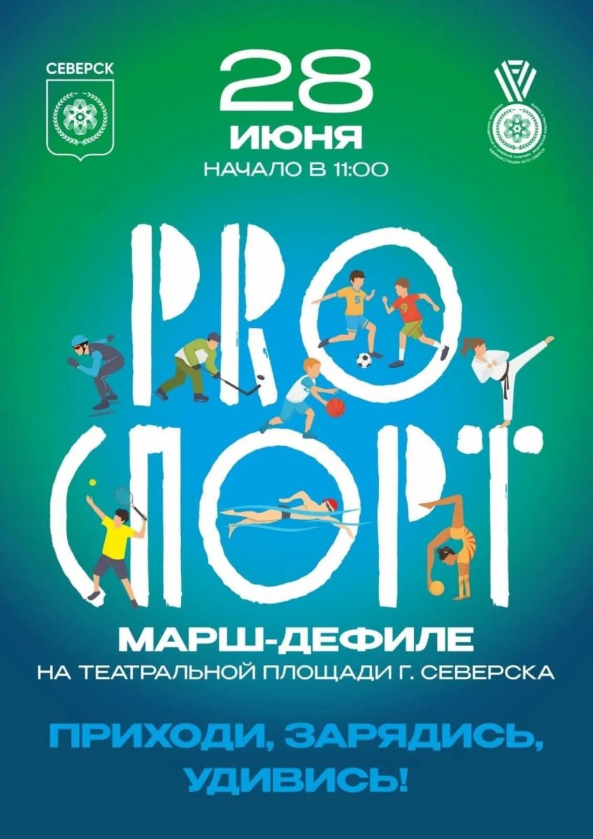 Одно из первых событий субботнего Дня города — марш-дефиле «ПРО спорт», которое соберёт на Театральной площади сотни северских спортсменов.