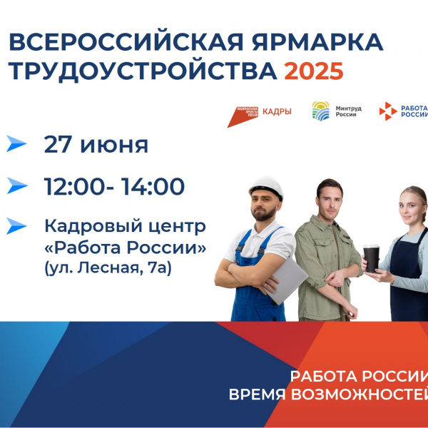 27 июня, 12:00-14:00, кадровый центр «Работа России» (ул. Лесная, 7А).