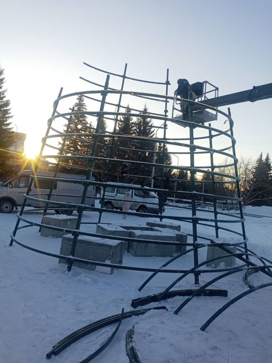 В Северске начали подготовку к новогодним праздникам. Бригада Муниципального бюджетного эксплуатационного учреждения приступила к монтажу главной городской ели Северска.